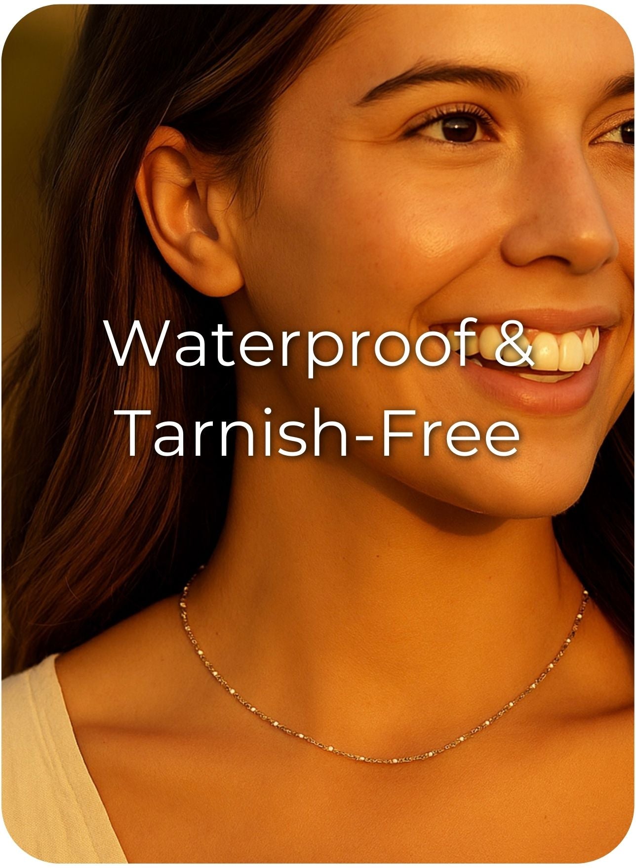 Designed to withstand everything from showers to workouts. Crafted from premium materials, our pieces are not only high-quality but also waterproof. With our lifetime color warranty, you can buy once and treasure forever.